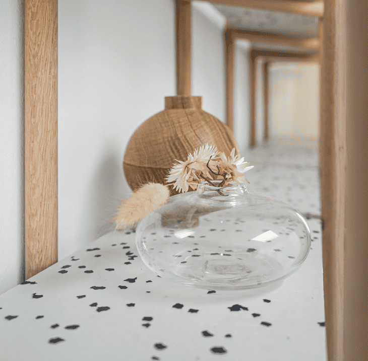 Ziegel oder Fliesen, die zu mindestens 60 % aus recyceltem Material bestehen. Geeignet für den Innen- und Außenbereich. Sie können hinsichtlich Farbe, Form und Größe individuell angepasst werden.